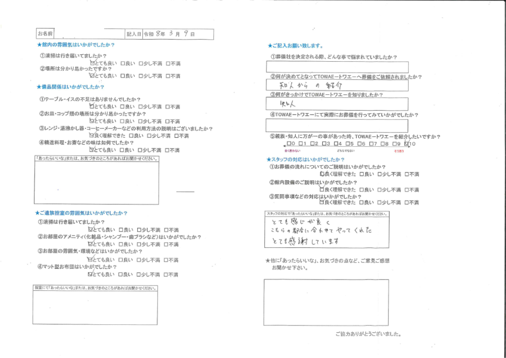 I様、アンケートご回答ありがとうございます。 このたびは心温まるご感想をお寄せいただき、誠にありがとうございます。